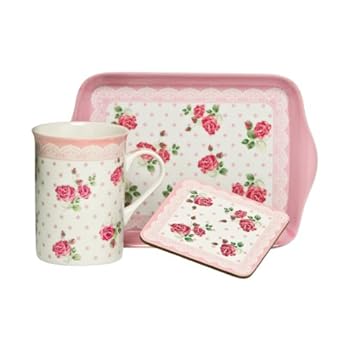 Premier Housewares Service à thé Mug / plateau / sous-verre Rose 3 pièces (Import Grande Bretagne)