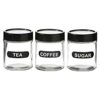 Premier Pot à thé, café et sucre Couvercle noir Rond Verre 10 cm x 12,5 cm Lot de 3 (Import Grande Bretagne). Reviewed by Peter M. Rating: