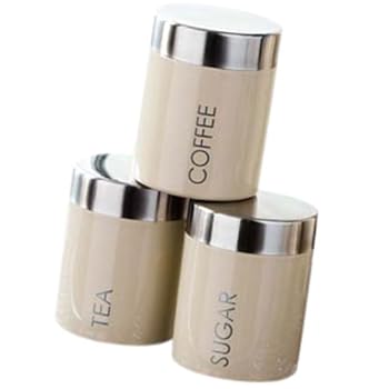 Premier Pot à thé, café et sucre Couvercle argenté et inscription Émail Crème Lot de 3 (Import Grande Bretagne). Reviewed by Milner O. Rating: